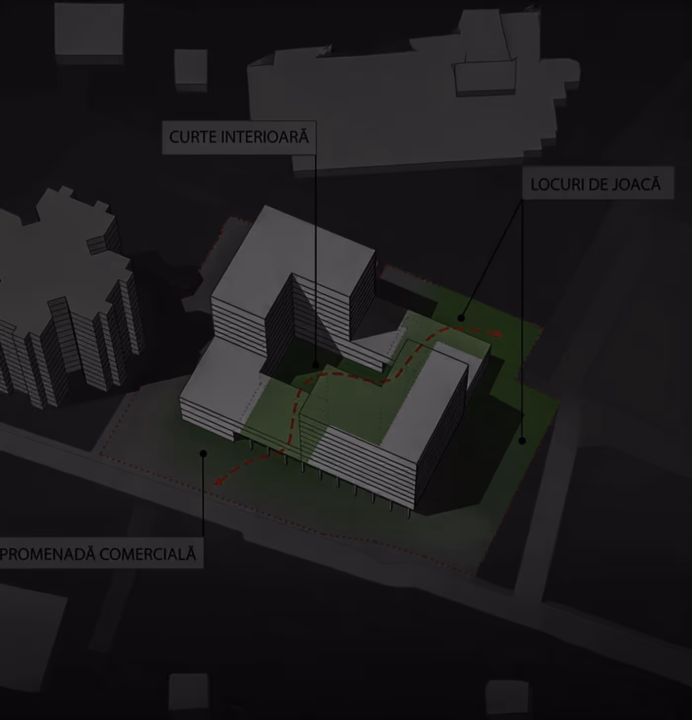 În același timp, proprietarii spațiilor comerciale beneficiază de un flux constant de clienți, generat atât de locatarii celor 200 de apartamente, cât și de angajații din birouri.